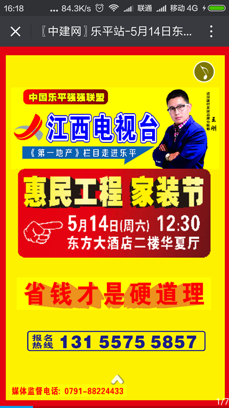 江西电视台 走进乐平!5月14日中午12点30分在东方国际大酒店举办惠民工程、家装节团购盛会!江西电视台建材家居资深品牌分析师亲临活动现场帮您破析装修陷阱,价格一放到底,并有免单大奖等您拿!权威媒体!全程监督!舒普家居顶作为当地知名品牌和影响力品牌有幸参加了此次惠民工程和家装节团购盛会,届时舒普将以丰富的奖品、高品质产品和优秀的服务来迎接各地参会消费者。届时敬请关注。